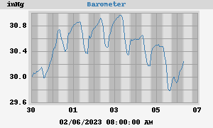 This week's max: 30.518 inHg at 02:27:32 AM (Sunday)